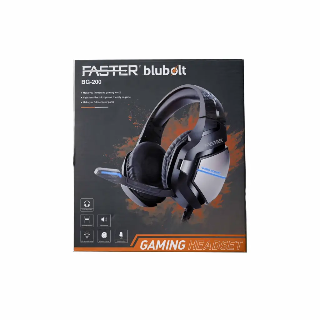 Brand: Faster Model no: BG-200 Speaker Diameter: 50 MM Frequency Range: 20-20KHZ Connectors: 3.5mm + USb Microphone Diameter: 6*2.7MM LED Light: Gaming Lightening Weight: 340G