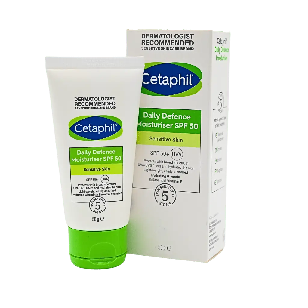 Daily Defence Moisturizer SPF 50 by Cetaphil is a lightweight and non-greasy formula. It provides hydration for a long time and protects your skin from harmful rays such as UVA and UVB. SPF helps protect from sun damage, dryness, and early signs of aging. Cetaphil SPF is designed for all skin types, including dry and sensitive skin. 📌Order Now. Cash on delivery is available across Pakistan at Sensato Trade