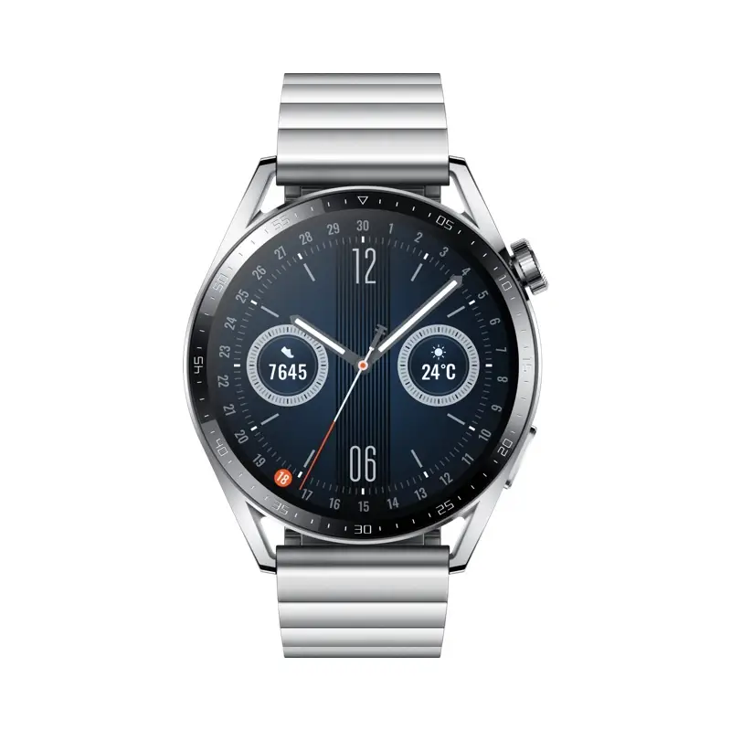 Premium stainless steel smartwatch with a vibrant AMOLED display and up to 14 days of battery life. The HUAWEI Watch GT 3 tracks workouts, heart rate, SpO2, and supports Bluetooth calls.