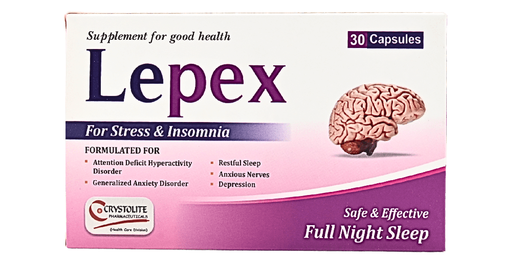 Lepex Capsules for Sleep Disorder by Crystolite Pharmaceutical are designed to treat stress and Insomnia. These sleeplessness pills are formulated with natural ingredients to make safe solutions for sleep issues. These capsules are scientifically designed to cope with daily environmental stress.