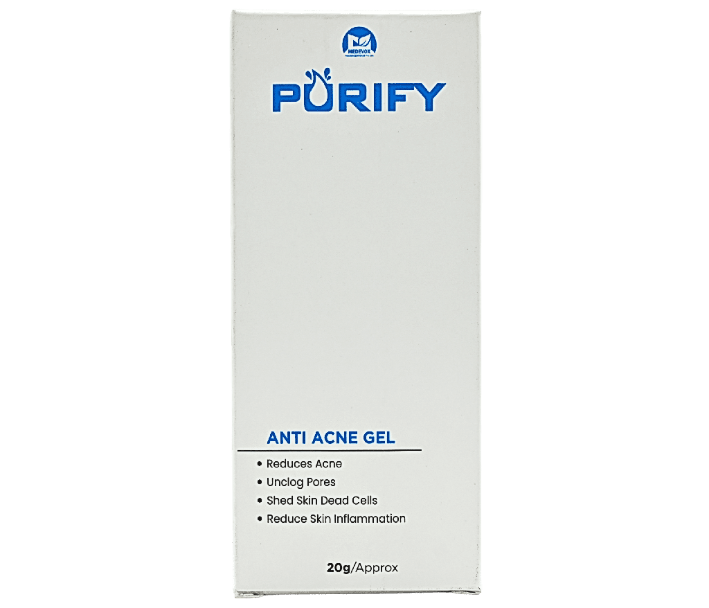 Purify Acne gel treats acne, pimples, and oily skin. It reduces inflammation & controls excess oil, resulting in clear and healthy skin.