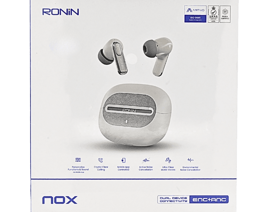 The Nox Earbuds from Ronin provide a smooth audio output for sound, calls, and entertainment. You can easily pair your earbuds with Bluetooth on laptops or mobilephones. Nox buds are ideal for listening to music for a long period of time due to their deep bass speakers.