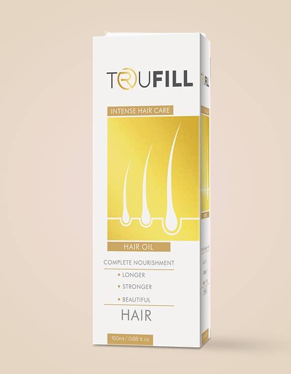 Trufill Hair Oil (150ml) — nutrient-rich oil formulated to nourish the scalp, strengthen follicles, and promote healthy hair growth.