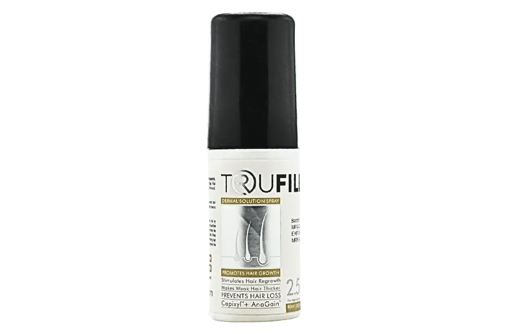 Trufill Hair Spray 2.5% (60ml) — topical minoxidil-based spray to help promote hair regrowth and reduce hair thinning.